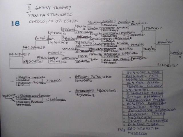 17 lutego 2013 roku hala sportowa w Obrowie gościła osiemnastu tenisistów stołowych. W rozegranym trzecim już gminnym turnieju ping-ponga zwyciężył Michał Sumiński przed Piotrem Falkiewiczem i Patrykiem Łęgowskim.